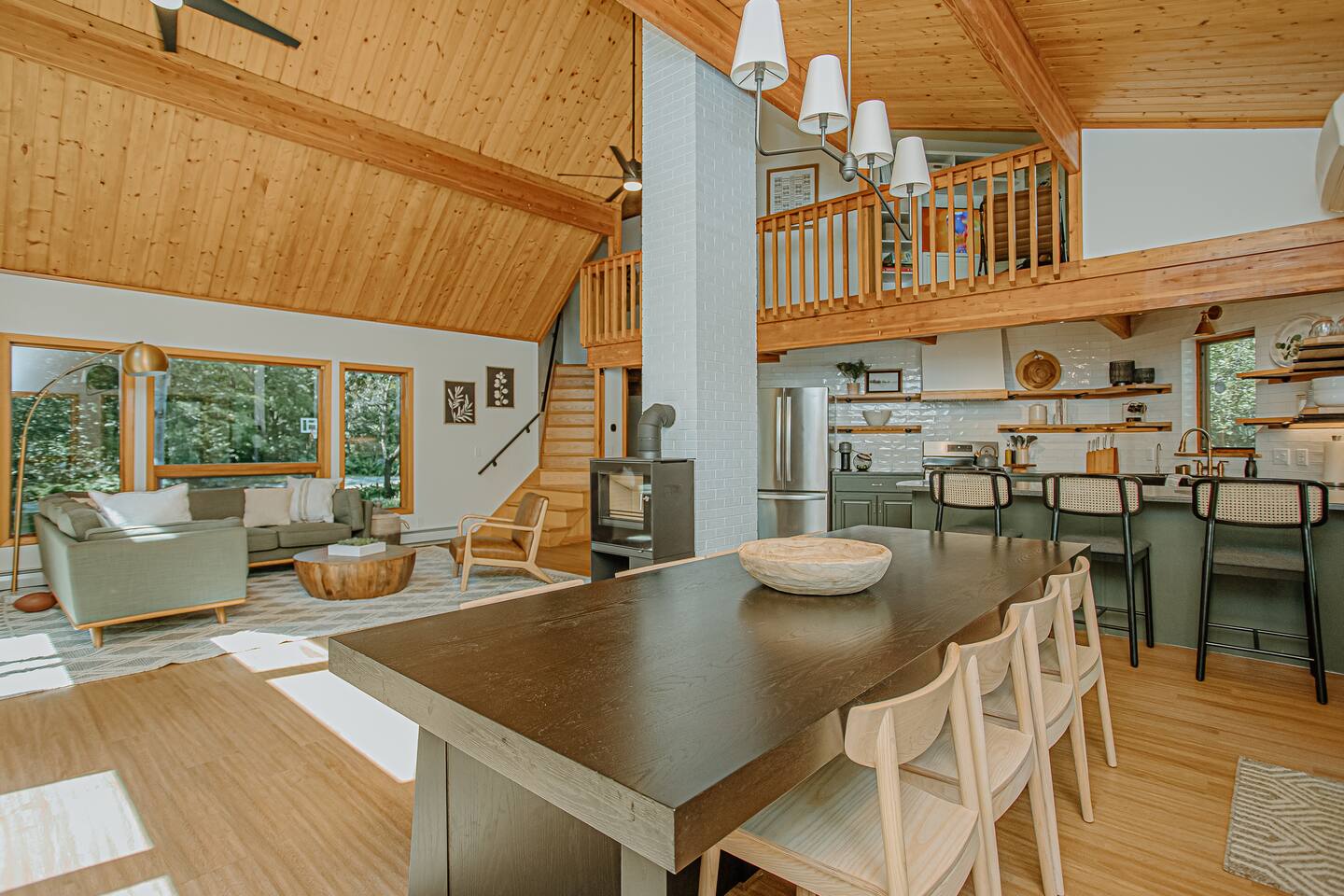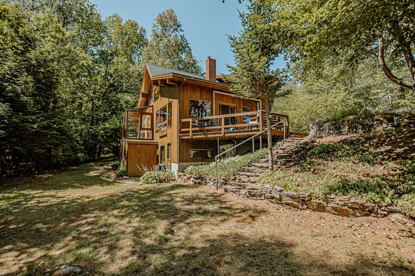 Guests are required to complete paperwork and enter payment information for a security deposit of $750 via our guest portal to complete booking. General Amenities Free WiFi Washer and dryer Towels and linens provided Complimentary toiletries Booster chair, high chair, and pack ’n play with mattress Four-wheel drive recommended for winter access Central AC in main living areas; bedrooms do not have separate AC units FAQ All entrances require walking up some stairs Parking Spacious private parking area Parking limited to a maximum of 4 cars House Rules & Policies No smoking anywhere on the premises No pets allowed No events, parties, or large gatherings No RVs allowed Guests must be at least 25 years old to book Fees apply for additional guests, vehicles, unauthorized parties, excessive cleaning, and smoking violations Use of the fire pit and recreational equipment is at renter’s and guests’ own risk Accessibility Accessible-height toilet Bathrooms located on all floors Suitable for children Seasonal Notes Dock and hot tub are available only during summer and early fall, weather permitting; please contact host for timing concerns Four-wheel drive is required for property access during snowy and icy conditions Maintenance services (lawn care, pest control, snow removal, etc.) may occur during your stay. We strive to schedule around guest visits, but if you have concerns, please contact your host promptly